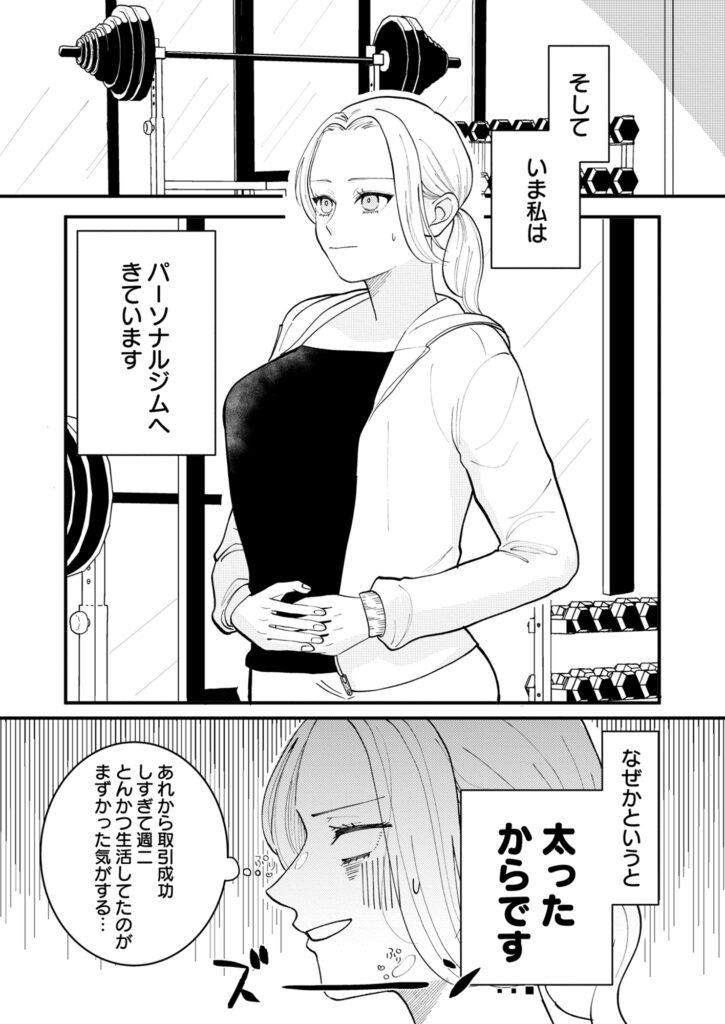 毎度のプチ贅沢に油断していた真帆は、背けられない現実<体重増加(涙)>に一大決心!パーソナルトレーナーの居るジムへ入会した。