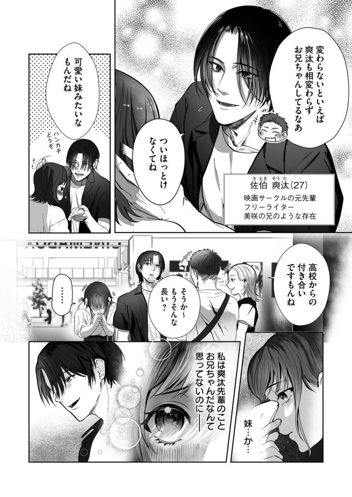 家賃問題で困っていた彼女を、映画サークルの元先輩・爽汰が「俺の家に来て」と誘い、同居がスタートする。兄のように優しい爽汰との日常に心地よさを覚えつつも、女性として意識されないことにやきもきする美咲。