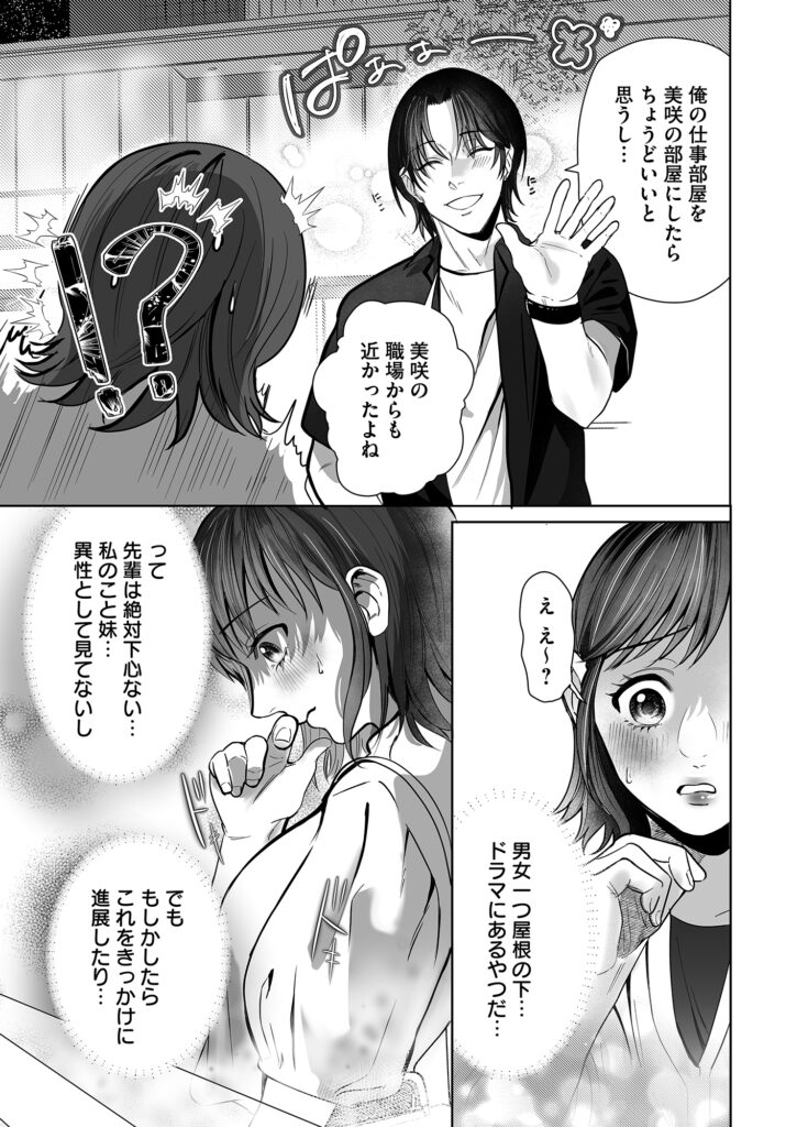 そんな中、酔った爽汰から突然求められ、戸惑いながらも応じることに。甘く切ないキス、指先や舌先が織りなす深夜の誘惑に、初めは逃げ腰だった美咲も次第に抗えなくなり…。
