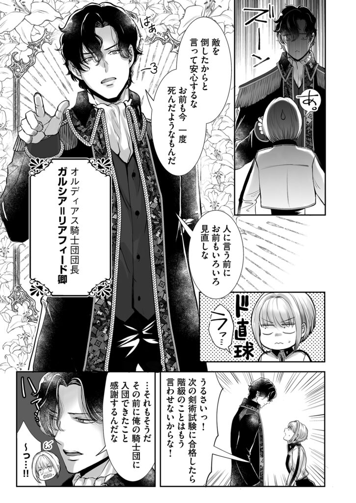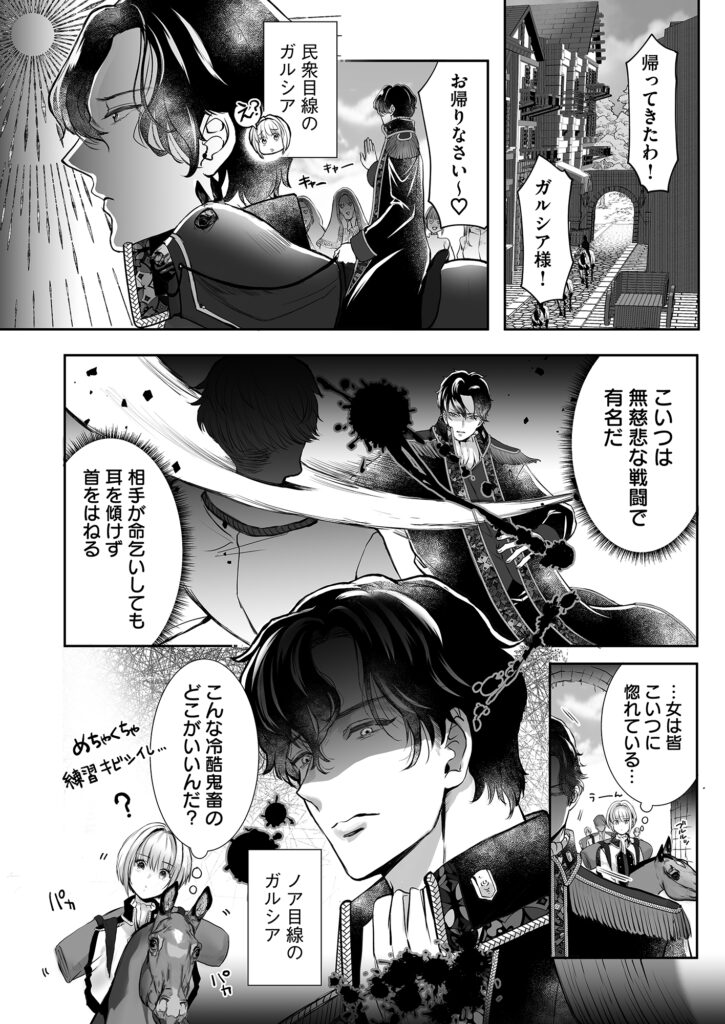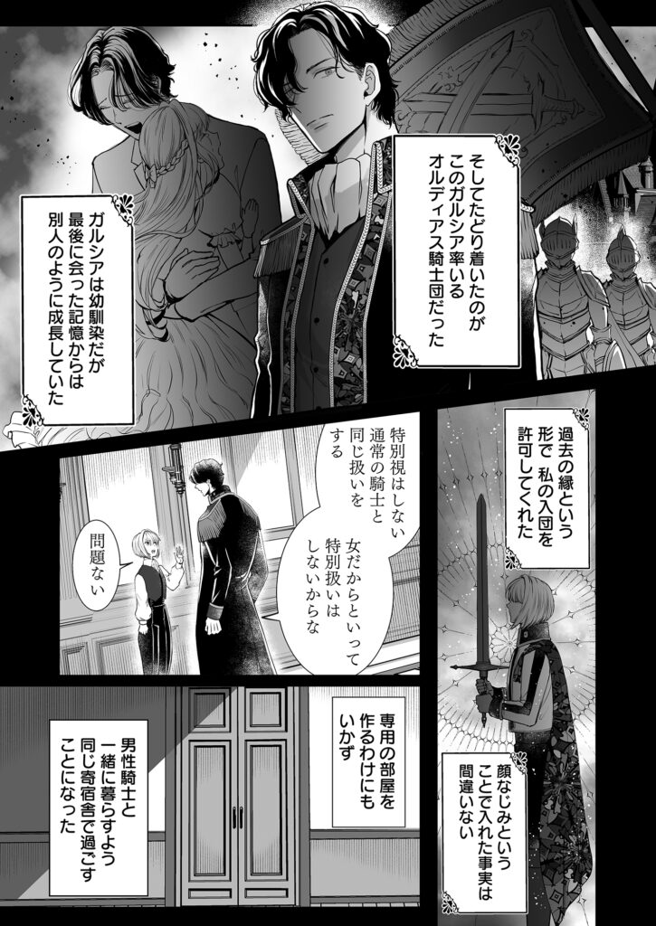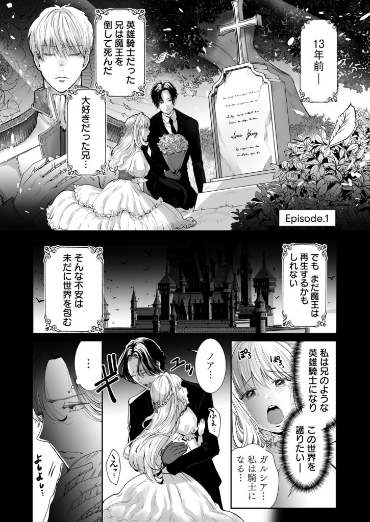 没落貴族の令嬢ノアは兄の敵を討つため、幼馴染ガルシアが設立した騎士団へ。女騎士という特異な立場を良く思わない者達もいる中、奮闘するノアをガルシアは大切に守ろうとしていた。